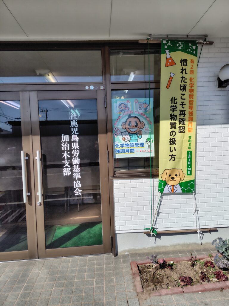 加治木支部でも、幟、ポスター等を本日掲示して、化学物質強調月間モードとなりました。